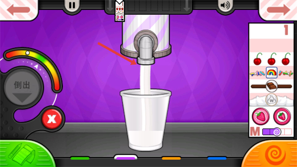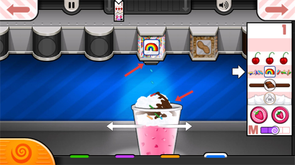 3、基礎原料添加完成后,需選擇對應配料模塊,將配料加入杯中,同時可移動杯子調整位置,確保配料準確添加,逐步完善冷飲的制作內容。