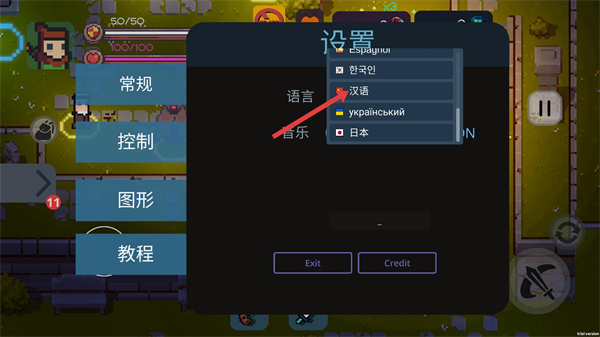 4、在語言選擇列表中點擊漢語,可將設置界面切換為中文顯示,便于更清晰地理解功能選項。