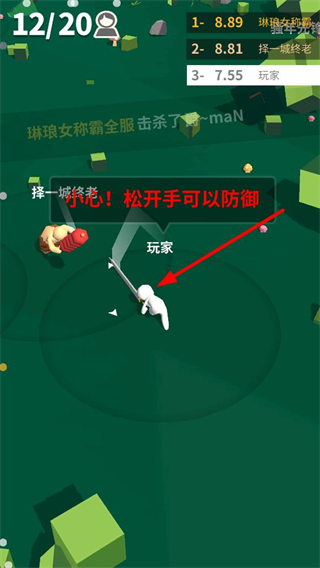 3、遇到其他玩家攻擊時松開手即可進入防御狀態,能避免被對方削減刀長,同時注意觀察對手動作,找時機切換回攻擊狀態。