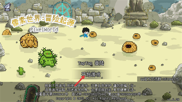 1、點擊開始游戲進入游戲主流程,該按鈕是進入冒險世界的核心入口,后續可體驗探索、戰斗等玩法。