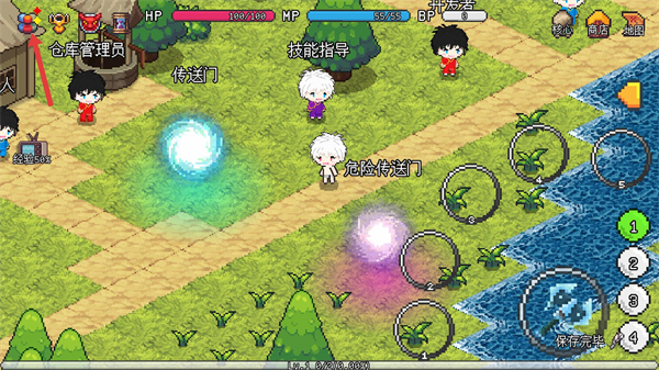 3、初始場景包含倉庫管理員、技能指導等NPC,還有傳送門、危險傳送門等功能點,可與NPC交互獲取資源或任務。