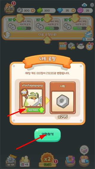 2、選擇對應材料,點擊兌換按鈕,可將10個材料兌換為1個螺母,積累螺母用于后續工廠升級。