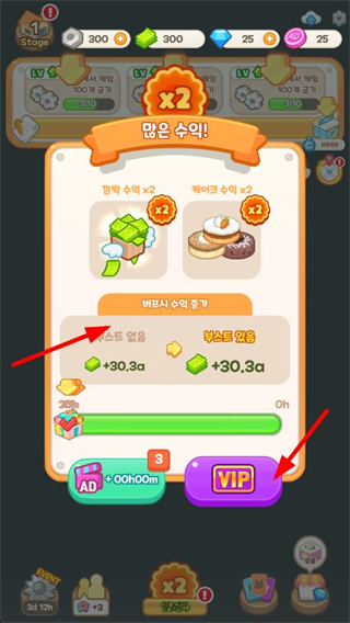 3、完成任務后會彈出豐厚收益界面,可獲得大量收益等獎勵,點擊VIP按鈕能解鎖雙倍收益,加快資源積累速度。