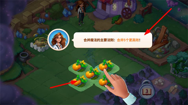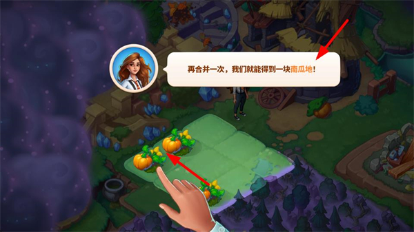 2、再次合并物品,將南瓜合并為南瓜地,提升物品等級,解鎖更高級的資源,增強游戲的養成體驗,為后續交易和探索做準備。