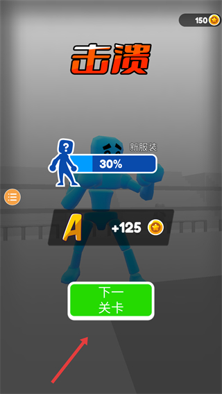 4、成功擊潰紅方,獲得A評級與125金幣,還有新服裝30進度。點擊【下一關卡】,可繼續挑戰,積累獎勵解鎖更多角色外觀。