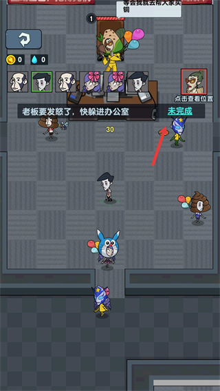 2、操控角色移動,避開周圍的阻礙,朝著辦公室方向行進,盡快抵達目標區域來完成任務。