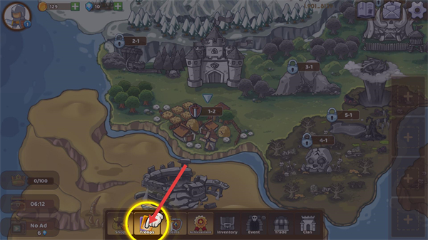 1、點擊底部Troop按鈕,可進入兵種配置界面,這是調整部隊陣容、優化戰力的核心操作入口。