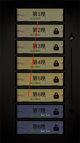 2、進入關卡列表頁面,點擊解鎖的第1晚選項,進入對應關卡的游戲場景,開始完成游戲任務。