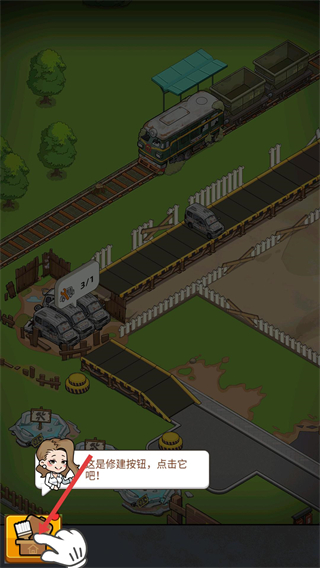 2、進入游戲后,根據提示點擊左下角的維修按鈕,這是解鎖維修設施、開展二手車處理業務的第一步。