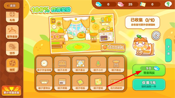 4、進入裝飾購買頁面,可查看成套的旅館裝飾,點擊整套購買按鈕,可一次性獲取該系列的所有裝飾,提升旅館風格。