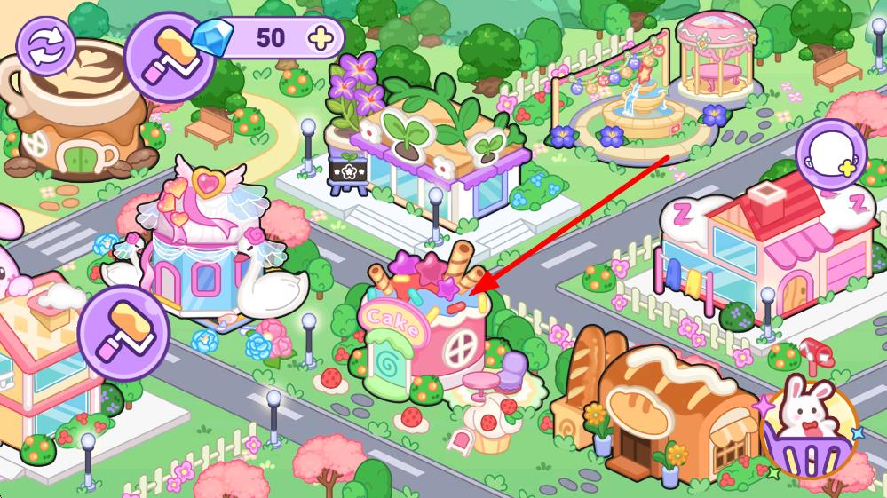 1、小鎮地圖界面選擇目標建筑,點擊進入該建筑的內部場景,可進行角色裝扮等相關操作。