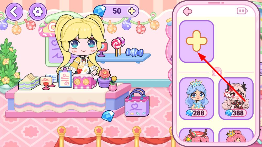 3、角色選擇界面點擊加號按鈕,可消耗對應道具解鎖新角色,豐富可使用的裝扮形象。