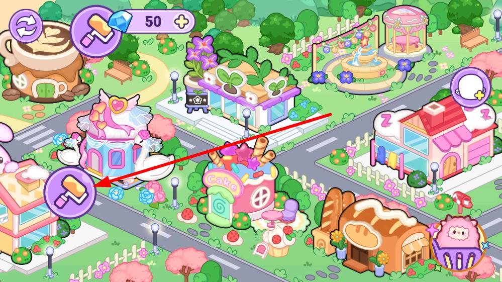 1、小鎮地圖界面點擊目標建筑,進入建筑內部的裝修場景,可進行家具布置等裝修操作。