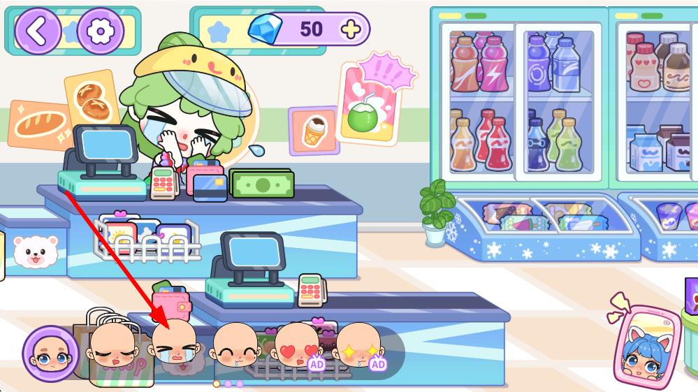 2、進入商店后,點擊左下角的顧客形象入口,可切換不同的顧客狀態,觸發對應的互動劇情。