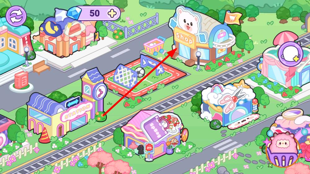1、小鎮地圖界面點擊商店建筑,進入商店內部場景,可參與商店相關的經營互動操作。