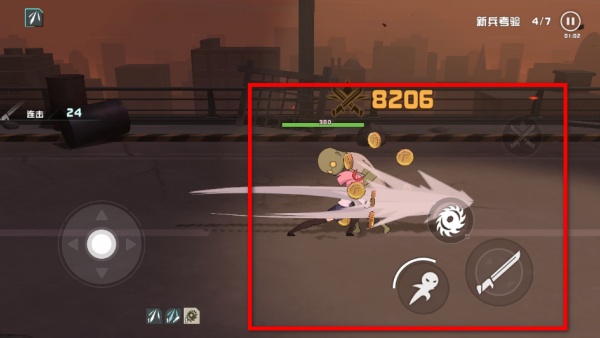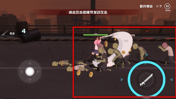 1、操控角色移動到敵人附近,點擊攻擊按鍵發動攻擊,擊敗周圍的敵人,同時可收集敵人掉落的金幣。