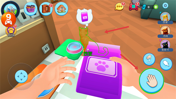 2、家居改造系統支持房間功能劃分,陽光充足的飄窗自動成為貓咪休息區,不同材質的抓板滿足磨爪需求。