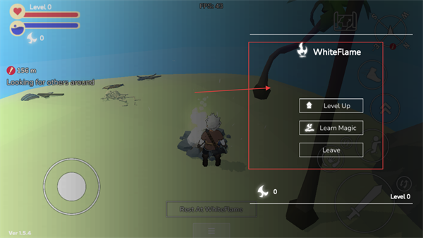 1、靠近場景中的白焰區域,點擊在白焰處交互按鈕,該區域是角色成長的核心功能點,可實現等級提升、魔法學習等關鍵操作。