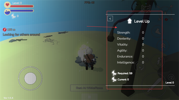 3、在升級界面,需積累59點對應資源才能升級,升級后可分配力量、敏捷等屬性點,不同屬性分別強化近戰輸出、行動速度等能力維度。