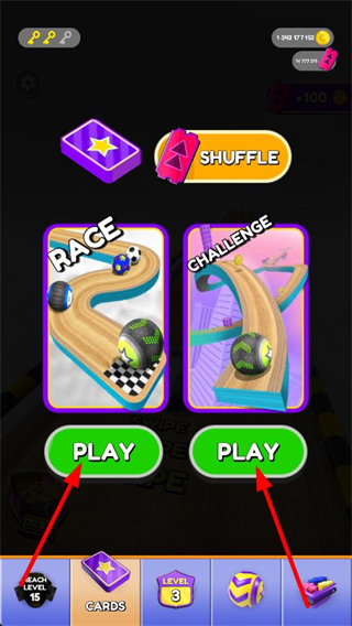 3、有RAGE和CHALLENGE兩種模式,點擊對應模式下的PLAY按鈕,即可進入相應模式開啟滾球挑戰,體驗不同玩法。