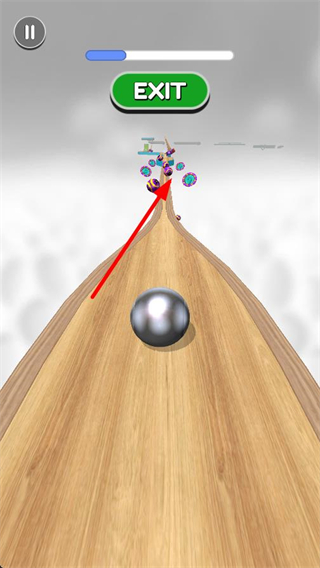 4、操控金屬球沿賽道前進,收集彩色物品獲取獎勵,若想退出關卡,點擊EXIT按鈕即可離開當前挑戰界面。