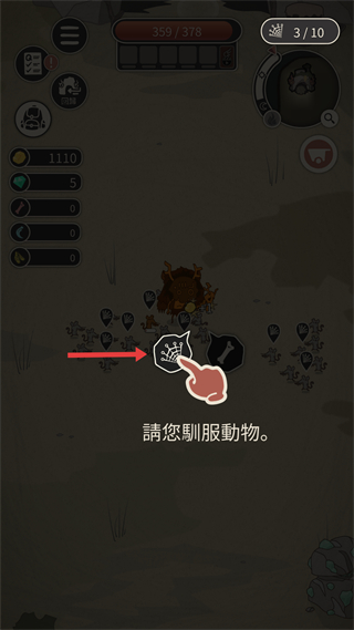 2、靠近目標動物后點擊界面中的馴獸按鈕,即可嘗試馴服該動物,馴服成功后動物會成為己方單位,助力后續探索與戰斗。