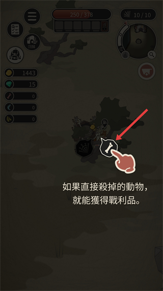 3、若選擇擊殺動物,點擊界面中的攻擊按鈕即可發起攻擊,擊殺后可獲得戰利品資源,這些資源可用于提升角色能力。