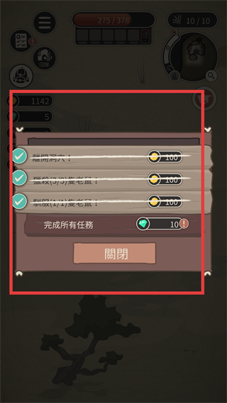 4、完成所有任務后點擊任務會彈出任務結算窗口,可領取對應的金幣、鉆石獎勵,點擊關閉按鈕關閉窗口,即可進入下一階段的游戲流程。