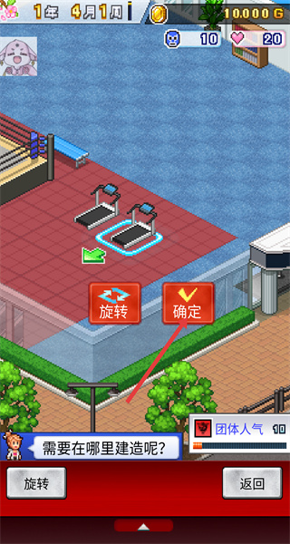 3、在場地的空閑區域中選擇合適的位置放置選中的訓練設施,可根據需要點擊旋轉調整設施方向,隨后點擊確定完成建造。