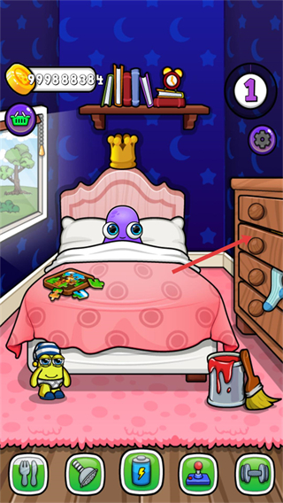 2、家居裝飾功能包含數百種可調配色方案。床鋪與墻紙支持漸變色彩過渡,書架陳列影響寵物閱讀興趣,地毯紋理改變房間整體質感。