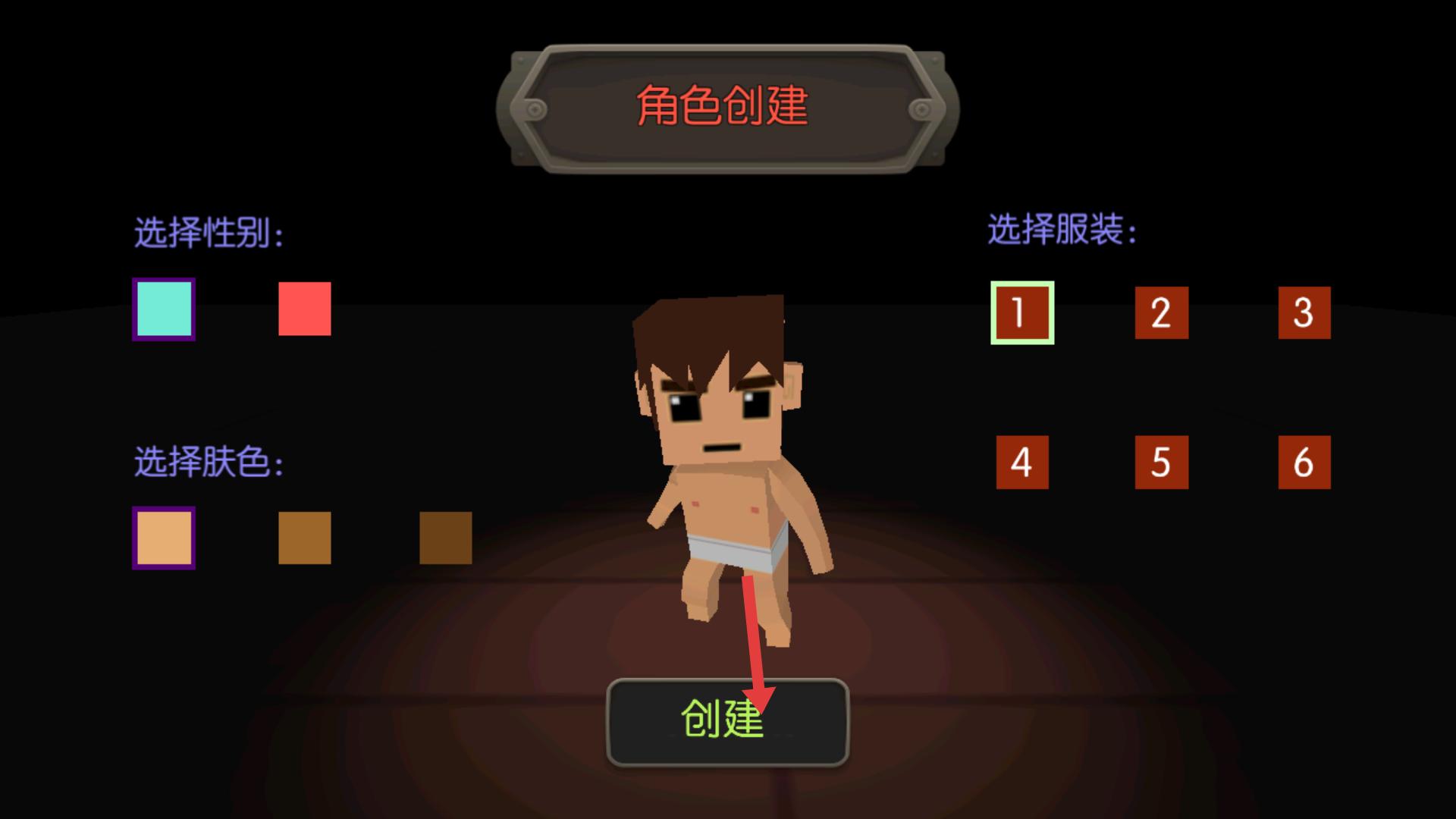 2、進入角色創建界面后,可選擇性別、膚色、服裝,完成自定義設置后點擊創建,生成專屬角色。