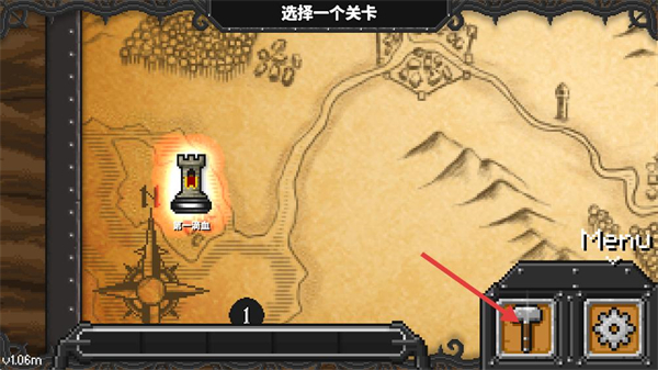 1、在關卡選擇界面,點擊錘子的圖案,進入塔防陷阱升級界面,推進游戲進程。