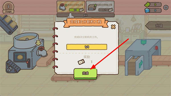 2、完成任務后會彈出提示窗口,點擊完成按鈕確認任務完成,即可獲得對應的獎勵道具,助力后續工廠運營。