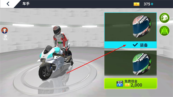 2、切換到車手頁面查看可選的裝備道具,選擇想要裝備的物品,點擊裝備按鈕完成道具穿戴,借助裝備提升車手或摩托的相關能力。