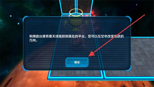 2、查看操作提示后點擊確定,記住可在空中改變跳躍方向的規則,后續跳躍時靈活調整球體的移動軌跡。