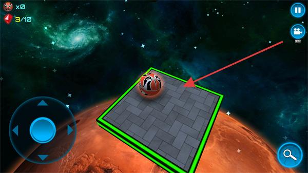 4、遇到障礙物時,利用彈跳臺調整球體位置,避開障礙的同時向目標區域靠近,穩步推進關卡進度。