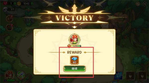 2、點擊繼續按鈕領取REWARD里的道具,完成當前關卡的結算流程,進入后續游戲界面。