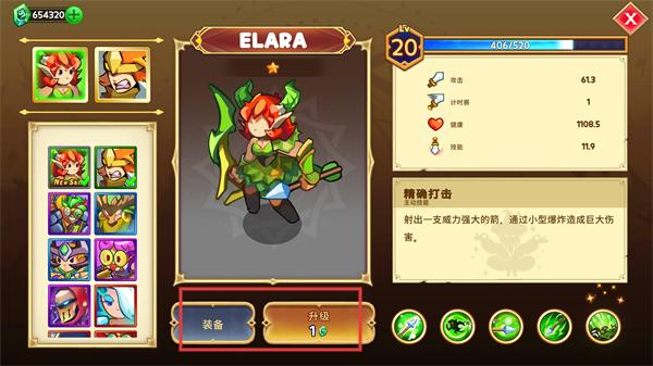 3、點擊升級按鈕消耗資源提升ELARA等級,強化其屬性與精準打擊技能效果,增強作戰能力。