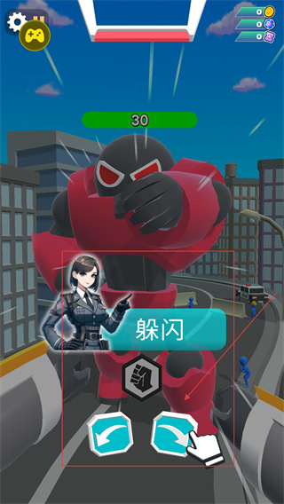 1、戰斗中需使用底部的左右閃避按鈕,躲避敵方攻擊,同時界面上方的綠色條會顯示剩余可操作次數,需在次數耗盡前完成對戰目標。