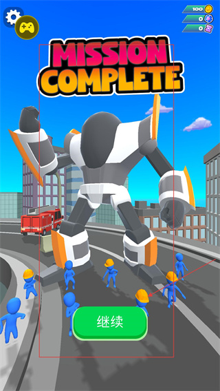 4、擊敗敵方后會顯示任務完成界面,可獲得對應的貨幣獎勵,點擊繼續按鈕即可進入下一個任務關卡,持續推進以解鎖更多內容。