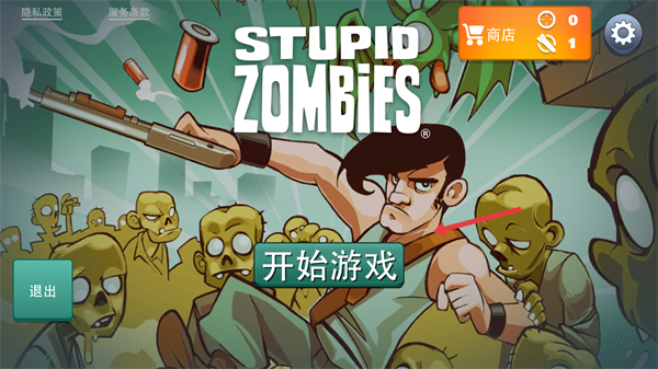 1、點擊開始游戲進入游戲,這是一款物理射擊類僵尸題材游戲,核心玩法是利用子彈反彈機制消滅僵尸,完成關卡目標。