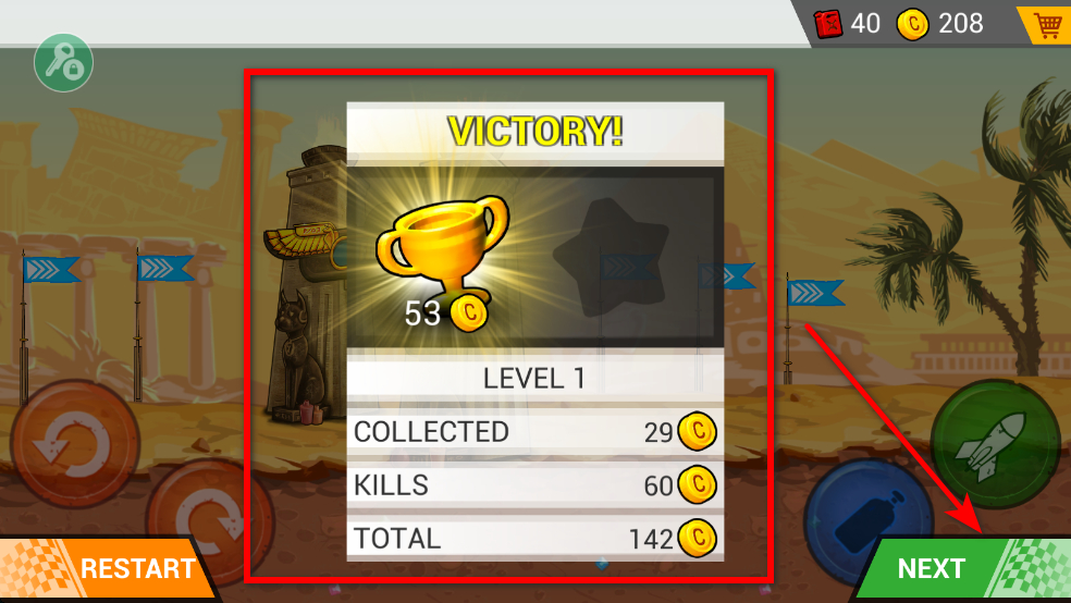 4、完成關卡后會顯示勝利界面,可查看收集的金幣和淘汰數,結算后點擊繼續按鈕進入下一關,繼續參與賽車對決積累更多資源。