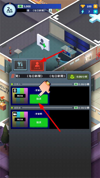 1、點擊工作人員選項,在彈出的界面找到主持人攝影師等崗位,點擊指派按鈕,為節目分配對應的工作人員。
