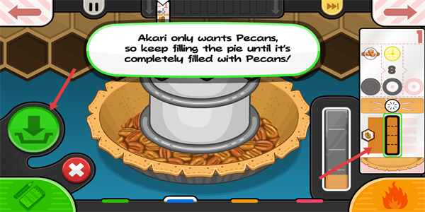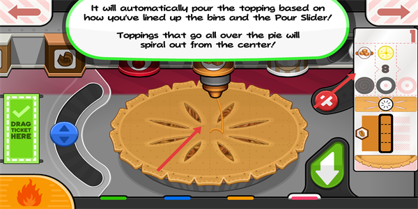 3、根據訂單票上的要求,選擇顧客指定的餡料,操作對應的按鈕持續向派中填充該餡料,直到派被這種餡料完全填滿,確保餡料符合顧客的需求。