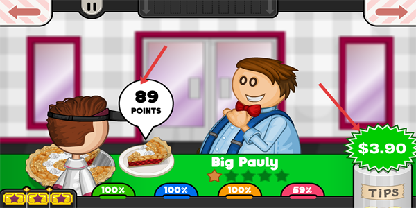 4、完成派的所有配料添加流程后,將制作好的派交付給對應的顧客,此時會獲得相應的分數,同時還能得到顧客給出的小費獎勵。