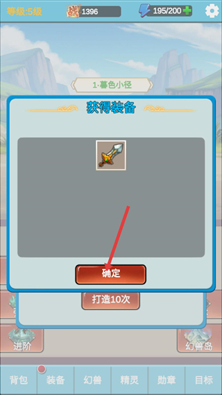 3、打造后彈出獲得裝備界面,點擊確定即可將裝備收入背包,后續可對裝備進行穿戴、強化等操作。