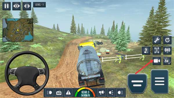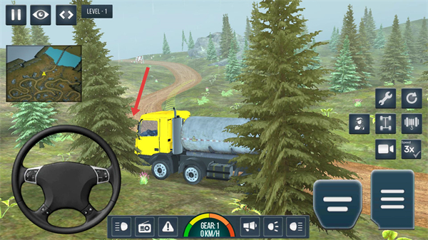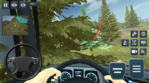 3、變成第一人稱視角后更方便行駛,行駛過程中若偏離道路進入林地,需立即調整方向盤轉向。