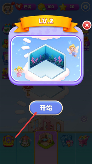1、點擊【開始】按鈕即可進入該關卡的布置任務,進入后需按照場景主題布置物品。