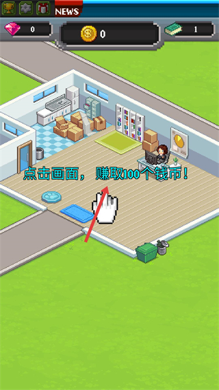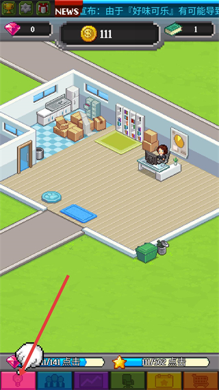 5、像素動畫呈現經營細節,員工辦公室隨等級擴充設備,上市公司出現霓虹招牌特效。