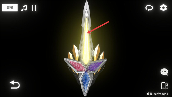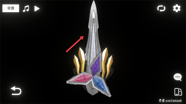 2、切換后展示的是尖刺造型的道具,帶有多色鑲嵌區域,需觀察其結構細節,該道具是聯動變身的核心部件之一,后續可通過交互觸發其發光等特效展示。